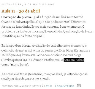 Foi o que eu senti, quando meu professor sugeriu que eu e a Bruna desistissemos do nosso blog Arte em Feltro e entrássemos para outro grupo.